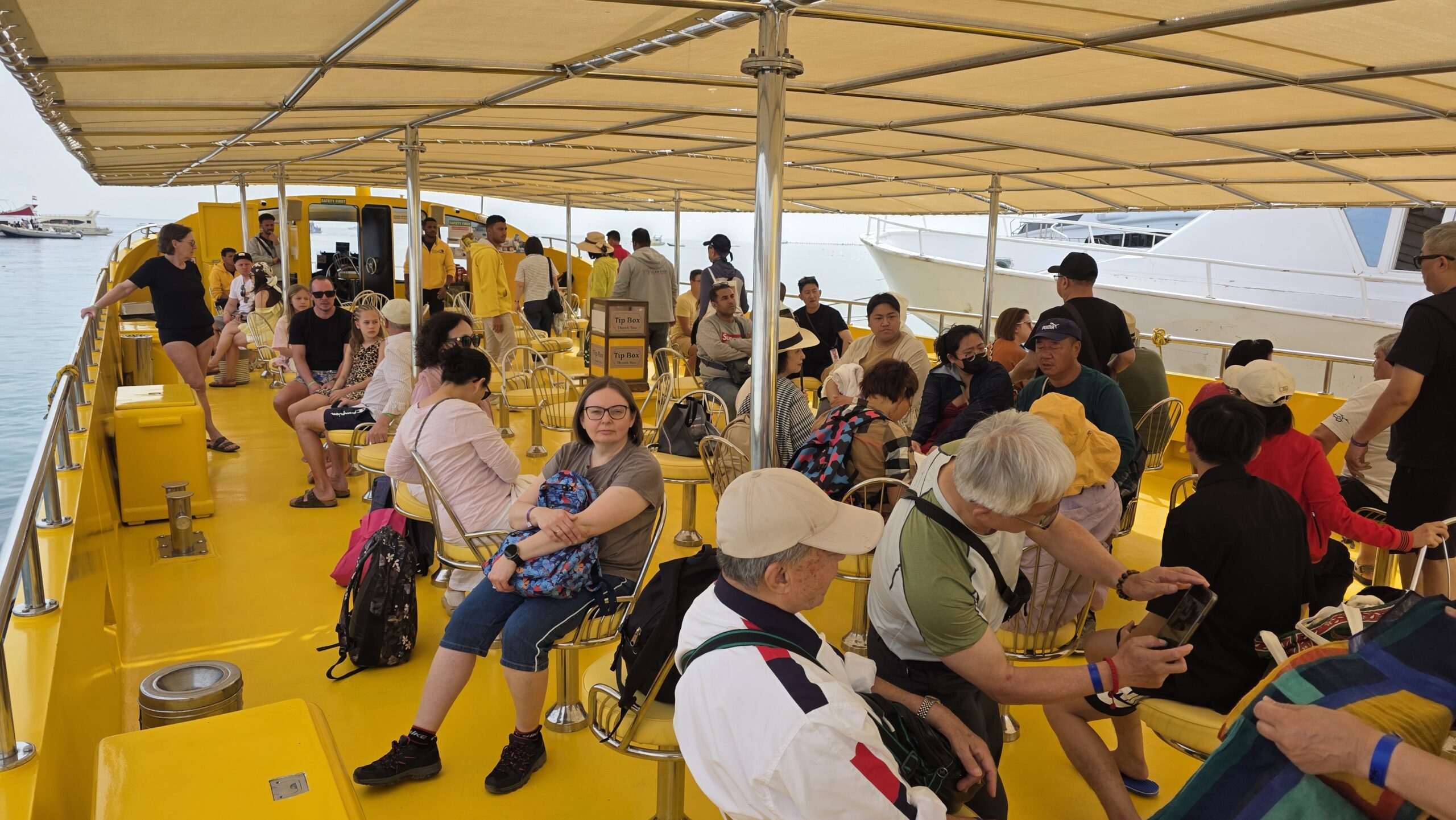 Wszystkie osoby znajdujące się na łodzi półpodwodnej są w kabinie nie tylko z wygodnymi siedzeniami ale także wielkim, panoramicznym przeszkleniem, które uławia nam ukazanie jak najpiękniejszych zakamarków Morza Czerwonego.